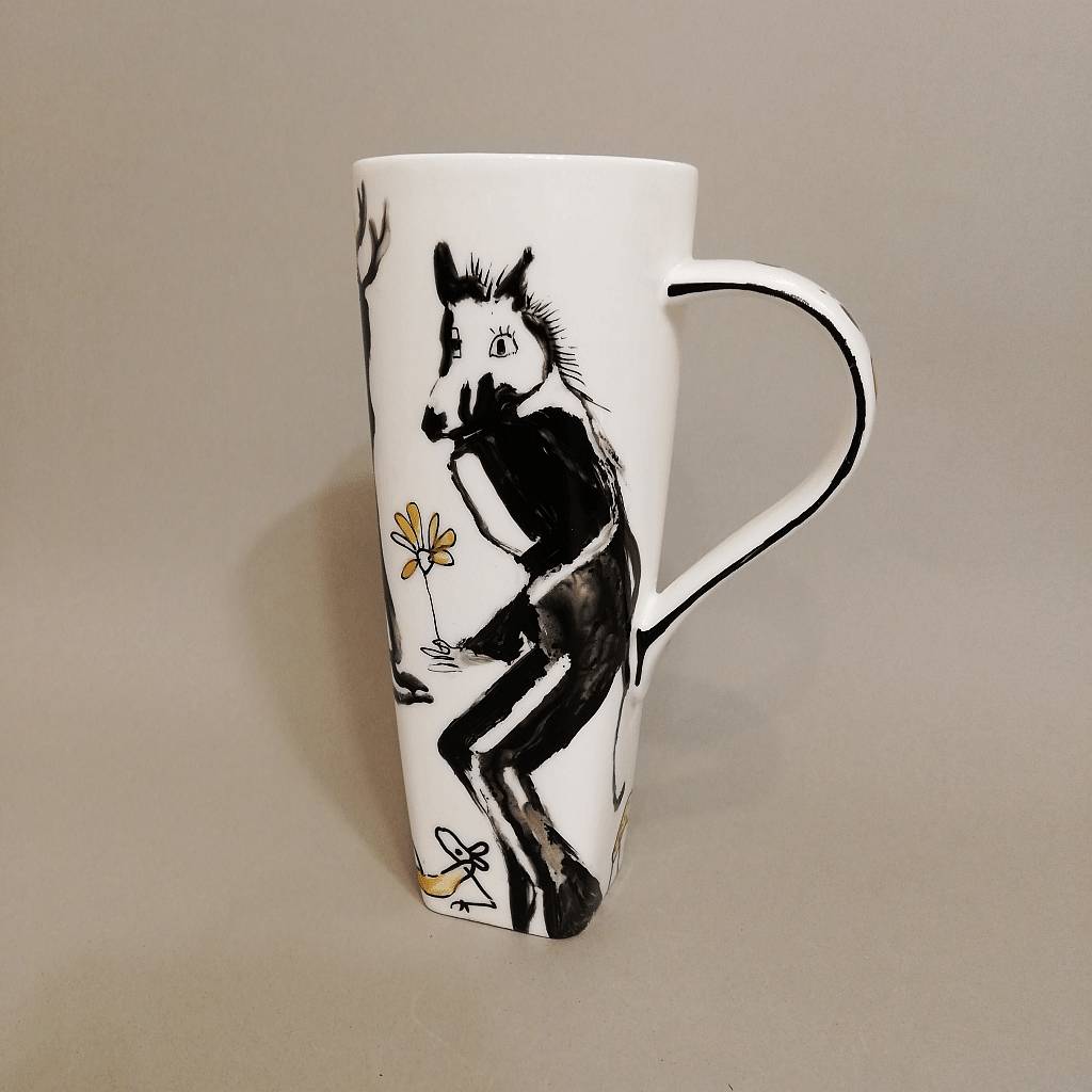 Material: Porcelana. Este producto es pintado (en superficie) con pintura para porcelana, fijada posteriormente en horno a baja temperatura (a 150°C), por lo que la fijación, aun siendo buena, NO es la misma que la cristalización de pigmentos en hornos de alta temperatura (1.280 ºC). Es apto para microondas y lavavajillas. No obstante, es recomendable su lavado a mano, para evitar su eventual deterioro. En particular, NO use la parte abrasiva de las esponjas al lavar.