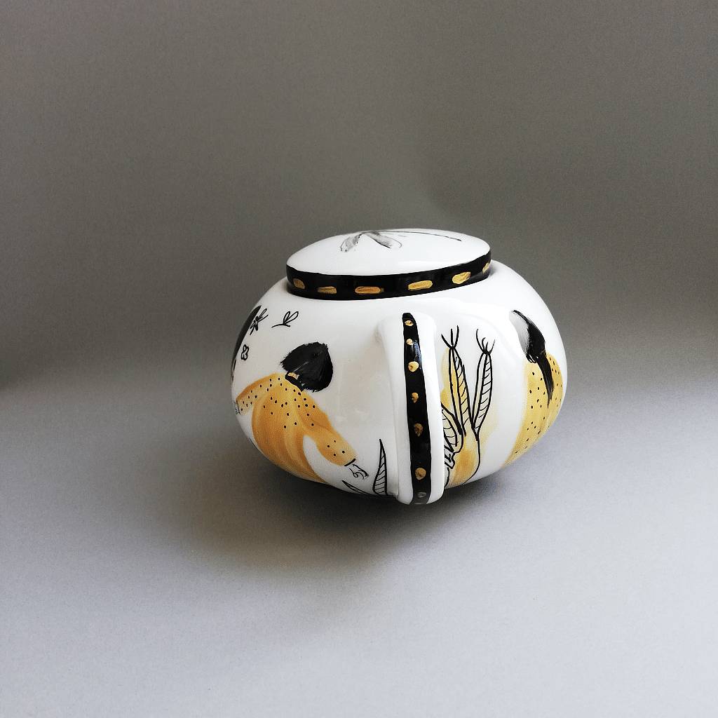 Material: Porcelana. Este producto es pintado (en superficie) con pintura para porcelana, fijada posteriormente en horno a baja temperatura (a 150°C), por lo que la fijación, aun siendo buena, NO es la misma que la cristalización de pigmentos en hornos de alta temperatura (1.280 ºC). Es apto para microondas y lavavajillas. No obstante, es recomendable su lavado a mano, para evitar su eventual deterioro. En particular, NO use la parte abrasiva de las esponjas al lavar.