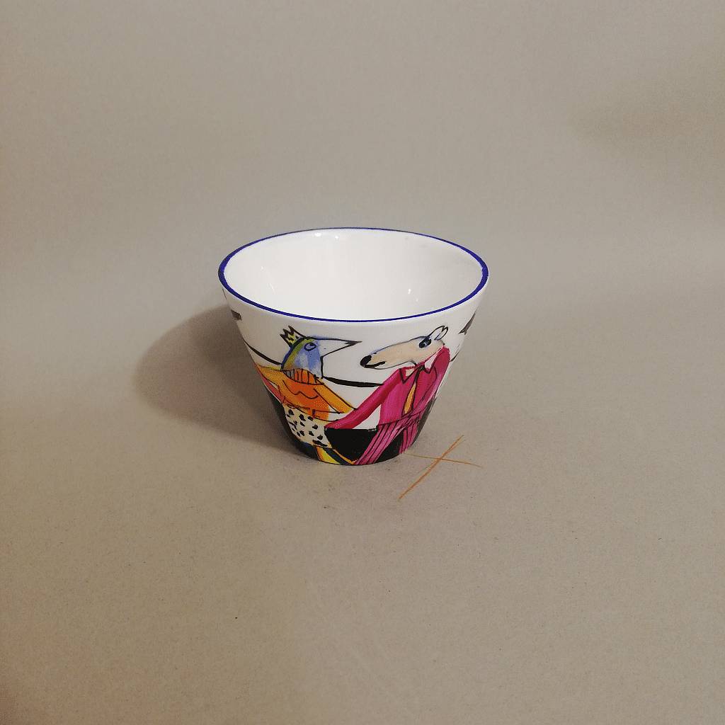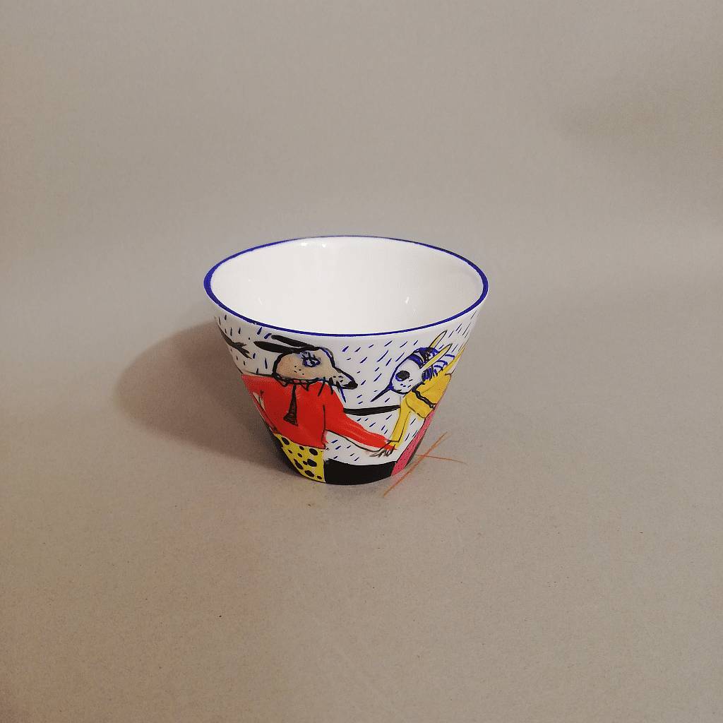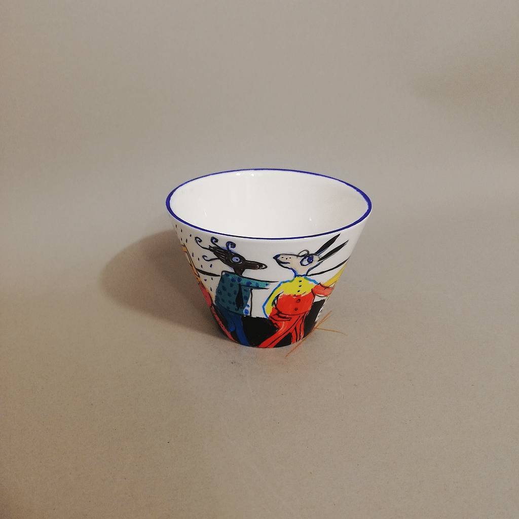 Material: Porcelana. Este producto es pintado (en superficie) con pintura para porcelana, fijada posteriormente en horno a baja temperatura (a 150°C), por lo que la fijación, aun siendo buena, NO es la misma que la cristalización de pigmentos en hornos de alta temperatura (1.280 ºC). Es apto para microondas y lavavajillas. No obstante, es recomendable su lavado a mano, para evitar su eventual deterioro. En particular, NO use la parte abrasiva de las esponjas al lavar.
